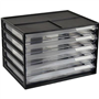Convenient finger holes for easy removal of paper and documents Provisions of top of unit to store general stationery supplies Securely stacks to create a modular storage system Comes complete with drawer labels Drawers are ideal for storing items such as A4 paper, bulldog clips, post it notes, erasers, pens etc. Clear drawers so that contents are easily visible 100% Australian Made