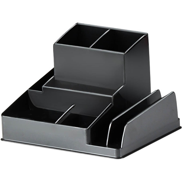 Offers versatility with desktop storage Multi compartments can store pens and pencils, scissors, ruler, paper clips, business cards, mobile phone, Post It Notes, letters, CDs etc Contemporary modern space saving design GECA (Good Environmental Choice Australia) certified product range Made from recycled material Environmentally preferable 100% Recyclable 100% Australian made