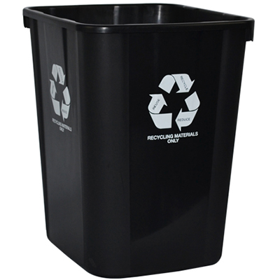 Great to keep recycled materials sorted for recycling Printed on 2 sides of the bin for easy identification Larger 32 litre capacity for use in a busy office Black colour manufactured from recycled material (GECA Approved) Provides easy identification for placement of recyclables Incorporated bag clasp to prevent bin liner from collapsing into bin Ideal for use in the office, kitchen, warehouse etc. Bin and Lid Sold Separately 100% Australian made