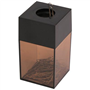 Easy access to paper clips Black plastic top with smoke tinted base Magnetic top for quick dispensing Lift-off cap for refilling