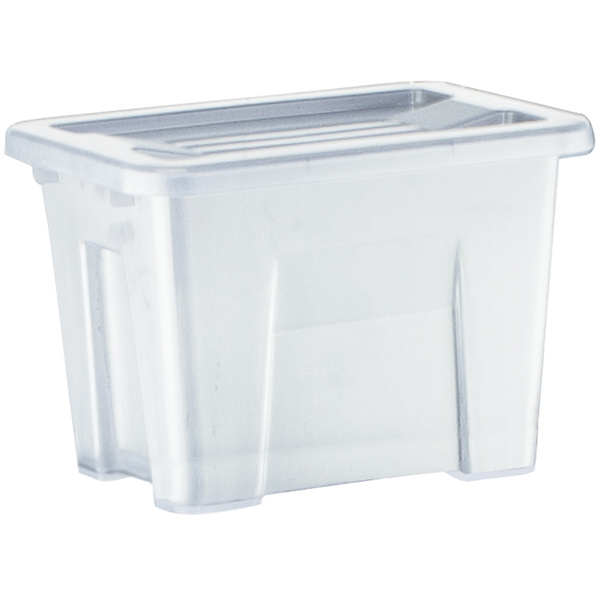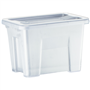 Strong and durable storage boxes with a modern design Designed to stack to offer multiple combinations of a modular storage system to maximise space and keep you organised Designed with inbuilt handles for easy handling Carry handles for easy mobility Made from transparent material in a modern graphite colour offering easy viewing of contents whilst at the same time providing some privacy of contents Made from food contact grade polypropylene material Ideal for hot desking and multi storage use applications in offices, stationery cupboards, mail rooms, kitchens, warehouses 100% Australian made