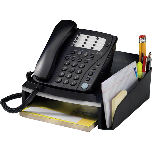Stylish accessories to modernise your office Black matte finish and metallic silver trim to match the latest flat panel monitors Accommodates most phone sizes Provision for storing phonebook underneath Convenient side pocket to store stationery essentials Non-skid protective rubber foot pads A must for all desks