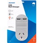 JACKSON CHARGER MAINS POWER OUTLET 2 X USB-A WHITE