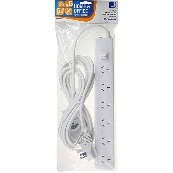 JACKSON POWERBOARD SURGE PROTECTED 6 OUTLET SWITCHED 5M WHITE