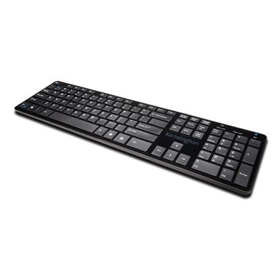 Single Device Bluetooth 3.0 Connection- Wirelessly pair with a smartphone, tablet or laptop running Android, iOS or Windows so you can text and write emails much faster than using the touchscreen Full-Size Design- With 6 rows of keys including a numeric pad, the keyboard layout is ideal for the touch typist looking for a professional experience to maximize their productivity Sleek Profile- At only 0.7 inches tall, the slim keyboard offers contemporary styling for your desktop Premium Quiet Keys- The scissor-style keys offer excellent responsiveness and feedback so you can type effectively and not disturb others around you Switching buttons allows you to quickly toggle between a wired USB connection and a Bluetooth-enabled smartphone or tablet Full-size keyboard layout features six rows including numeric keypad Sleek profile is only 0.7 inches thin Premium, quiet scissor-style keys offer great responsiveness and feedback Power can be supplied to the keyboard either through a USB port or with batteries Bluetooth 3.0 compatible with a single Android, iOS or Windows mobile device