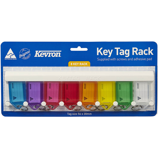 Key racks can be mounted anywhere for easy access The perfect way to safely store and identify keys Comes complete with self adhesive sticky pads Assorted 8 key tags and key tag rack