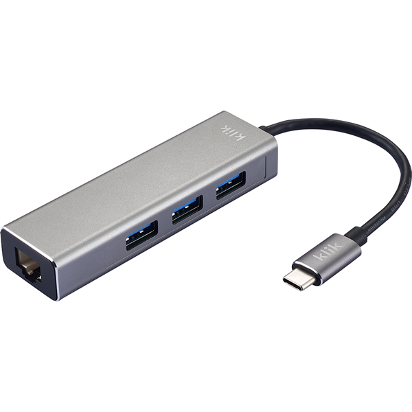 KLIK 3-PORT HUB USB-C TO USB-A 3.0 AND GIGABIT ETHERNET SILVER