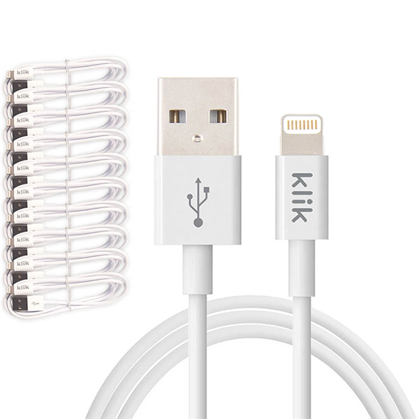 KLIK APPLE LIGHTNING TO USB SYNC CHARGE CABLE 1200MM WHITE PACK 10