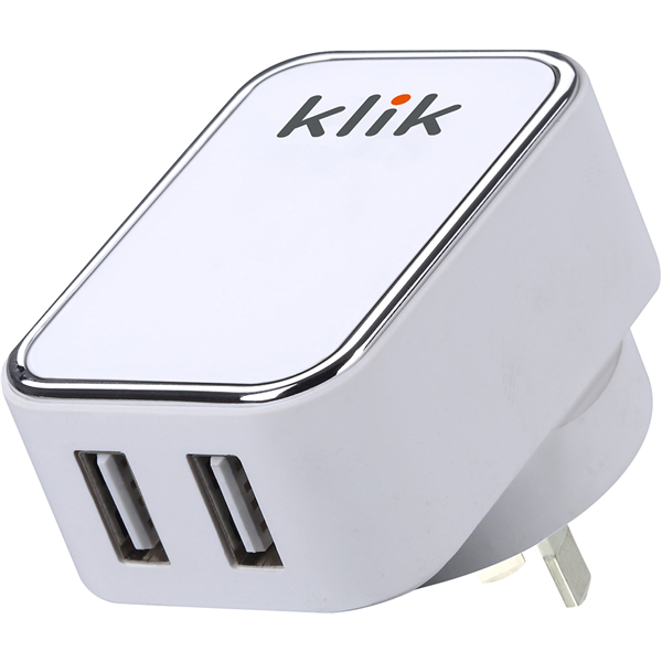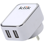 KLIK DUAL PORT USB 15W WALL CHARGER WHITE