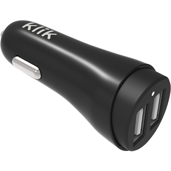 KLIK USB DUAL PORT 17W CAR CHARGER BLACK