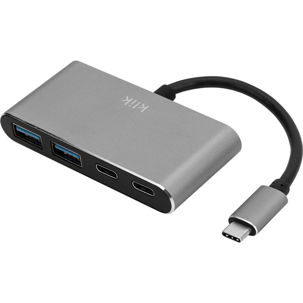 KLIK USB-C MALE TO DUAL USB-A 3.0 AND DUAL USB-C HUB SILVER