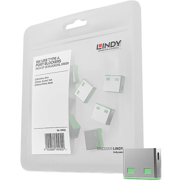 LINDY 40461 USB PORT BLOCKER PACK 10 GREEN
