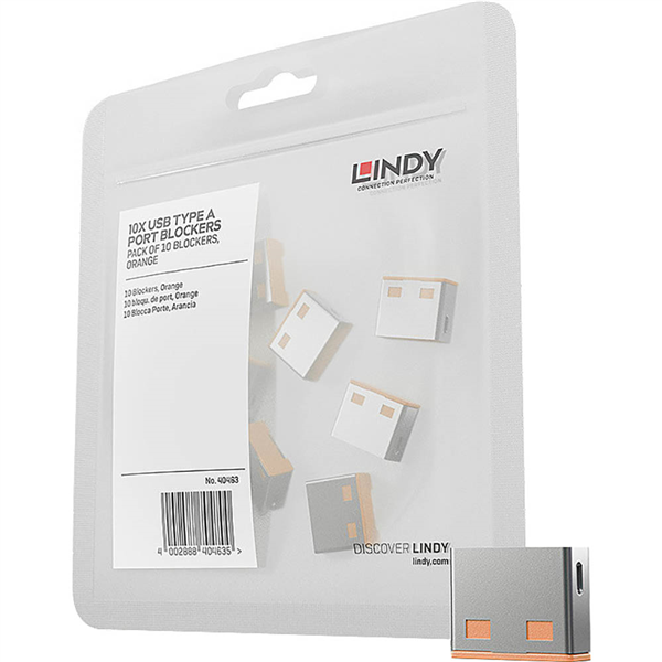 LINDY 40463 USB PORT BLOCKER PACK 10 ORANGE