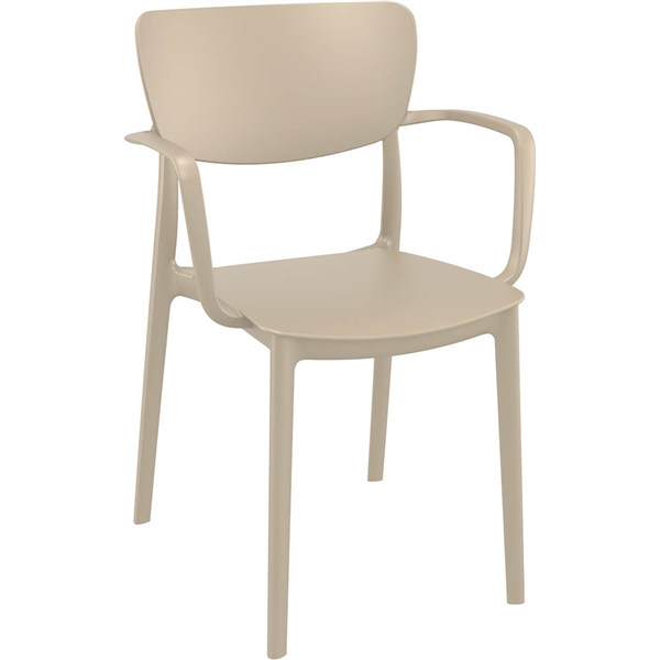 Lisa armchair is produced with a single injection of polypropylene reinforced with glass fibre obtained by means of the latest generation of air moulding technology with neutral tones