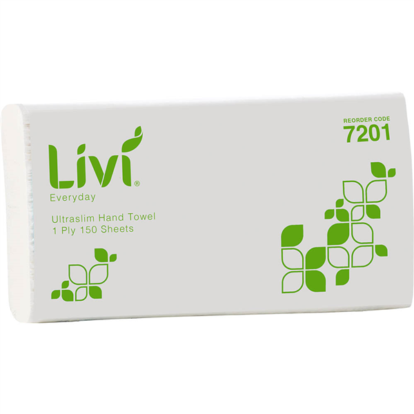 LIVI BASICS ULTRASLIM HAND TOWEL 1-PLY 150 SHEET 230 X 240MM CARTON 16