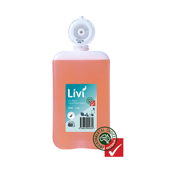 The Livi Delux Perfumed foam hand soap is lightly scented and gentle on skin