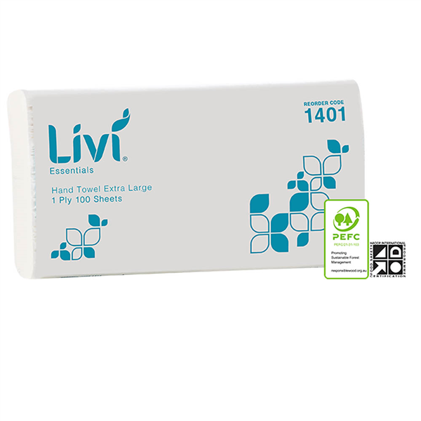 LIVI ESSENTIALS EXTRA LARGE HAND TOWEL 1-PLY 100 SHEET 230 X 360MM CARTON 24
