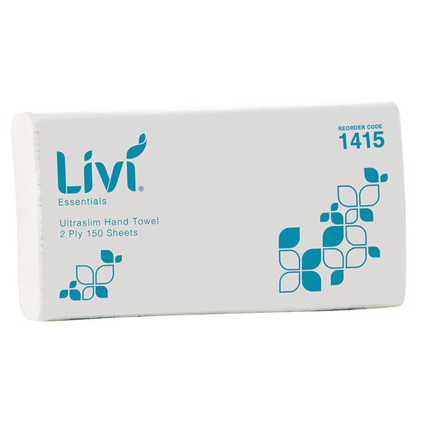 LIVI ESSENTIALS ULTRASLIM HAND TOWEL 2-PLY 150 SHEET 230 X 240MM CARTON 16