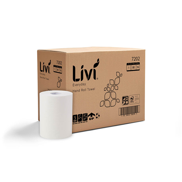 LIVI EVERYDAY HAND TOWEL ROLL 1-PLY 80M WHITE CARTON 16