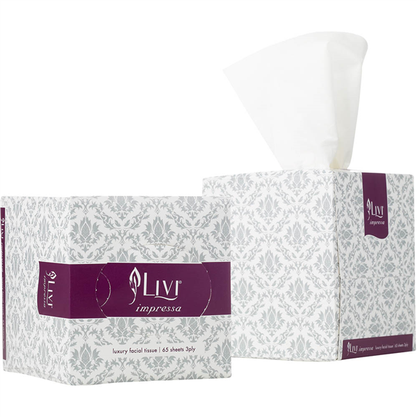 The Livi Impressa 3ply facial tissue delivers a premium soft touch with shea butter lotion