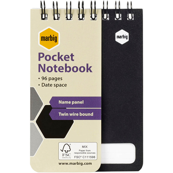 MARBIG ACCOHIDE POCKET NOTEBOOK WIRO BOUND 96 PAGE 112 X 77MM BLACK PACK 5