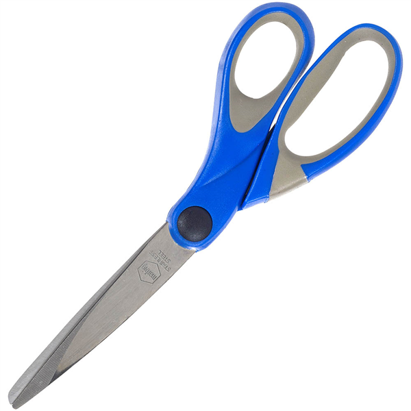 General purpose scissors, suitable for cutting light cardboard, paper, tape, cloth and many other materials in the office or home Comfortable, moulded grip handles for effortless, easy cutting Blades are corrosion-resistant Contemporary blue colour with gray insert