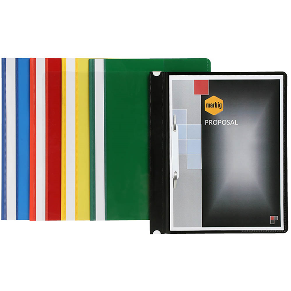 Includes two prong fastener and available in various colours Inside back cover with vertical pocket Simply punch papers and insert Full length title strip Gloss finish cover