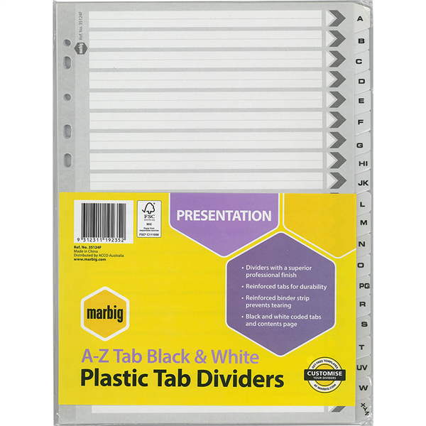 MARBIG DIVIDER A-Z TAB A4 BLACK/WHITE