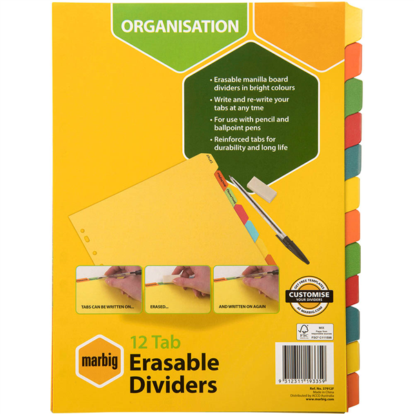 MARBIG DIVIDER ERASABLE MANILLA 12-TAB A4 ASSORTED