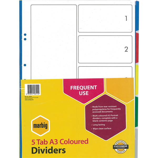 Marbig dividers are made from reinforced manilla board with plastic reinforced tabs and binder strips for durability and longer life