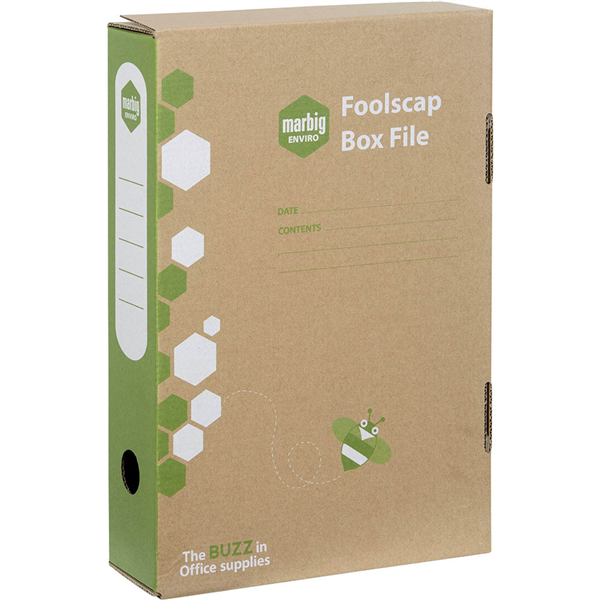 MARBIG ENVIRO BOX FILE SPRING FITTING 80MM FOOLSCAP KRAFT
