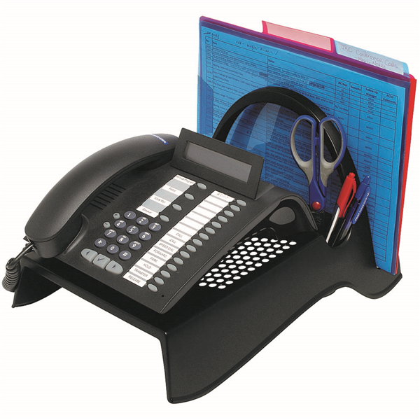 Raise telephone off the desk for easier access and to free up valuable space, paper and envelope caddy with pen holder helps keep supplies at hand Good Environmental Choice Certified Product Made from 100% Recycled High Impact Polystyrene (HIPS) 100% recyclable after use