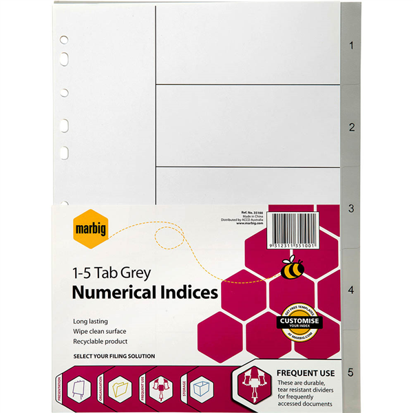 MARBIG INDEX DIVIDER PP 1-5 TAB A4 GREY