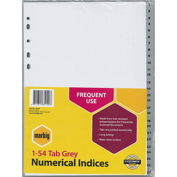 MARBIG INDEX DIVIDER PP 1-54 TAB A4 GREY