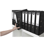 Tough, durable and a staple in office filing 75mm capacity with locking mechanism to keep pages secure Holds up to 375 sheets of paper Rado fitting allows easy closure so you can fit more on your shlef Spine label for easy identification Made with 100% recycled board Metal thumbhole for easy retrieval of files