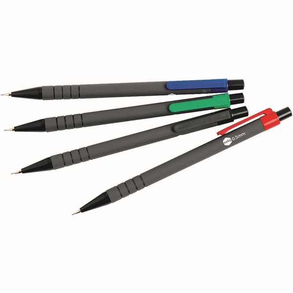 Marbig mechanical pencil with eraser has a cushioned grip for greater comfort and control The pocket clip makes this pencil easy to carry with you Round barrel is comfortable to hold and write with Comes with a built in eraser to amend any mistakes and lead to get started right away Perfect for everyday writing and drawing Stylish mechanical pencil for home, office and school use