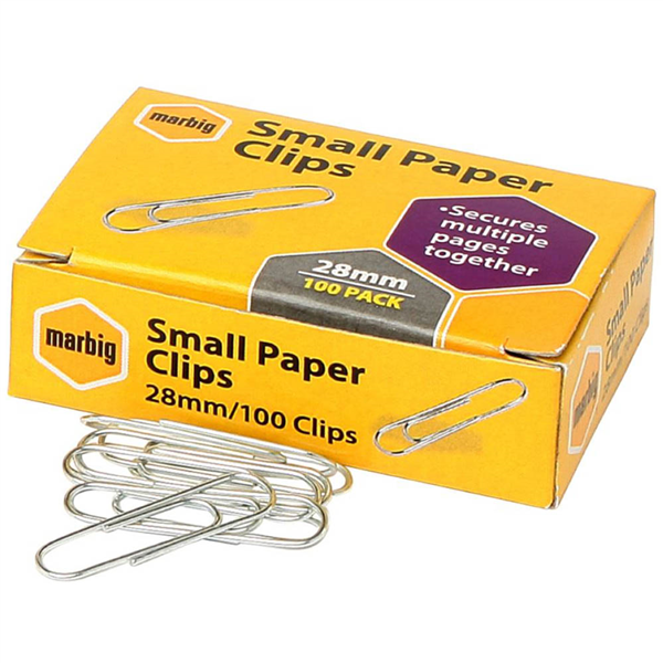 MARBIG PAPER CLIP SMALL 28MM BOX 100