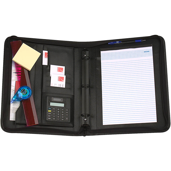 Handy retractable handles allow the product to switch from desk use to 'on-the-go' in an instant Includes A4 writing pad and calculator Pen loop and expanding pocket for storage Additional storage pockets in various sizes Retractable handles for easy carrying 25mm 3O binder for your filing needs