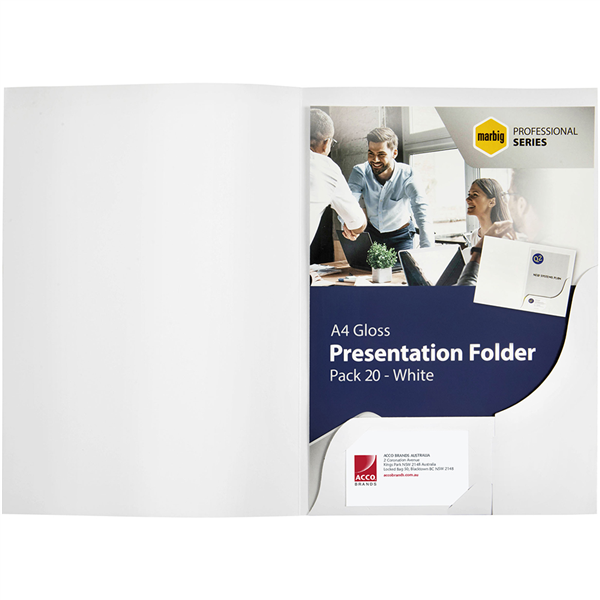 MARBIG PROFESSIONAL PRESENTATION FOLDER A4 GLOSS WHITE PACK 20