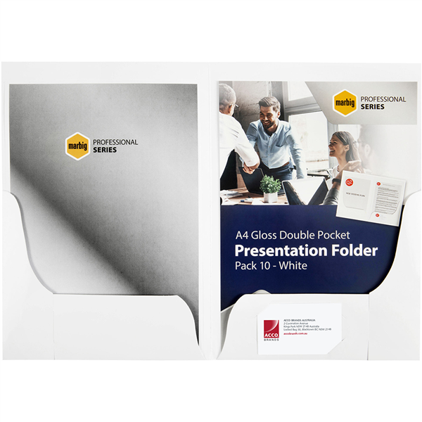 MARBIG PROFESSIONAL PRESENTATION FOLDER DOUBLE POCKET A4 GLOSS WHITE PACK 10