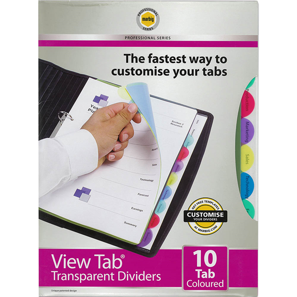 MARBIG PROFESSIONAL SERIES VIEW-TAB DIVIDER PP 10-TAB A4 ASSORTED