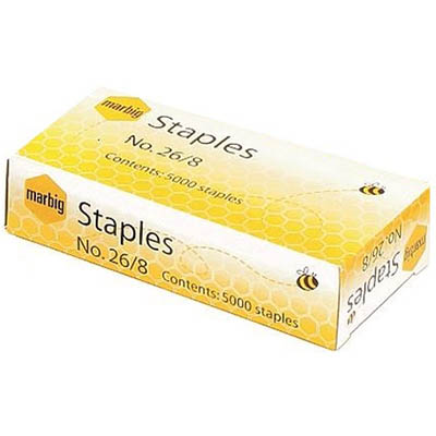 Marbig staples have been engineered ensure the perfect compatibility for stapling operations over and over again without jamming or breakage High quality staples, making them extremely efficient Manufactured from steel to precise standards Developed for accurate trouble free stapling Each box contains 5,000 staples Staples to suit most desk top staplers