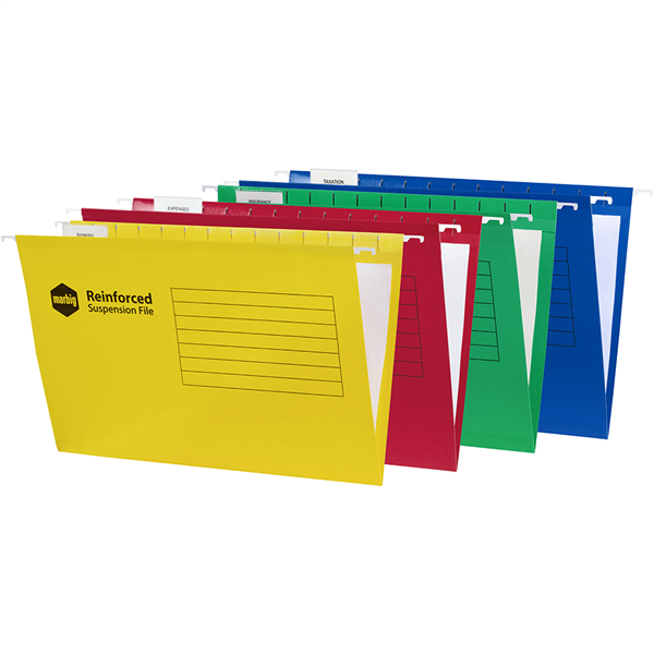 The Marbig suspension files come complete with tabs and inserts and are also available in a variety of colours