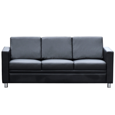 Professional single, double or three seater, modern square finished leather wrapped lounge Upholstered in genuine leather, the Marcus range is a comfortable modern lounge Designer stylish breakout furniture Strong legs with protection caps on the frames to eliminate marking the floor Fully upholstered black leather lounge Quality foam for great comfort and support