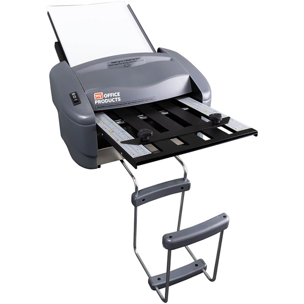 Stapled sheets not a problem, accepts up to 3 sheets at a pass folded into one Compact design, the 7400 fits onto the smallest desk when required then easily stowed away when not in use For the office, a small fully functioned A4 folding machine Speed up to 4000 per hour Auto stop after last page Auto feed Hand feed stapled sheets up to 3 Folds all fold types