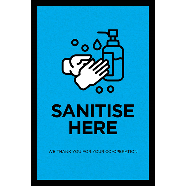 MATTEK ABSORBENT SANITISE HERE MAT 600 X 900MM BLUE
