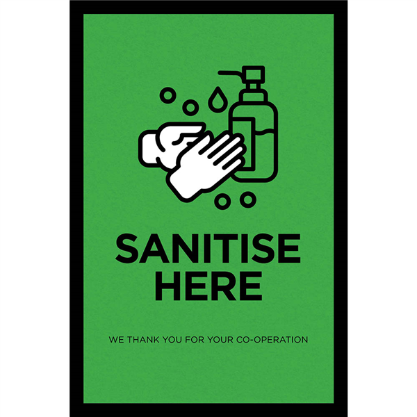 MATTEK ABSORBENT SANITISE HERE MAT 600 X 900MM GREEN BLACK