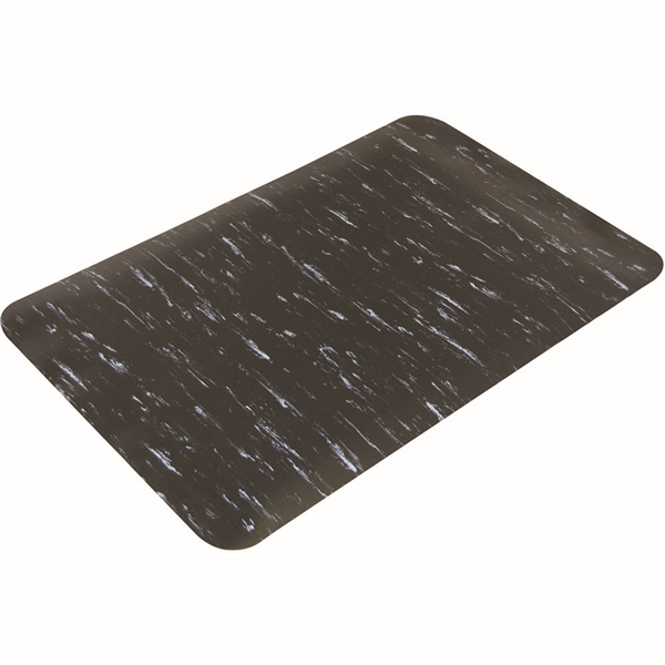 The marble patterned surface gives the Mat a classy look to fit in with interior decor The smooth vinyl topping provides good traction and is easy to clean, while the soft PVC foam provides a comfortable standing surface Bevelled edges on all four sides allow easy access on and off for foot or wheeled traffic and prevent trips The grippy PVC foam underside allows the mat to sit steady on hard floor surfaces or low pile carpet This mat is suitable for use in dry, high use environments where comfort and relief is needed from standing on a hard surface Soft PVC foam underside provides relief and comfort when standing Marble patterned surface gives the Mat a classy look, suitable for use in high end interiors No glue bond - adhesive free joining of the two part system reduces the chance of the mat delaminating thus giving it extra longevity Non trip bevelled edges are safe and suitable for trolley wheels Smooth surface is easy to clean Mat can easily be cut or modified to shape and size HACCP certified for use in dry areas