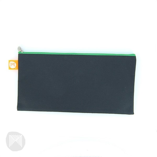 Large pencil case is 37.5cm x 26.4cm and skinny pencil case is 34cm x 13.6cm. Large features two zip compartments to keep supplies organised. Great for storing all school supplies. Pencil cases feature sturdy green and orange zips that stand out and look great against the black.