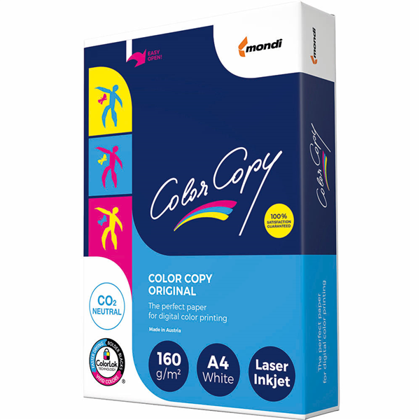 Some of the most popular applications for Colour Copy are presentations, invitations or customer brochures Extra smooth surface, excellent for full colour printouts Ideal whiteness for true colour reproduction Environmentally friendly production, sourced from sustainable forests Colour Copy is CO2 neutral and carries the EU Ecolabel Ageing resistance ISO 9706 certified